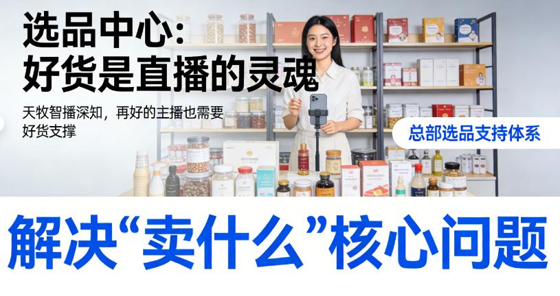 天牧智播深知,再好的主播也需要好货支撑。总部为加盟商提供强大的选品支持体系,解决“卖什么”的核心问题。