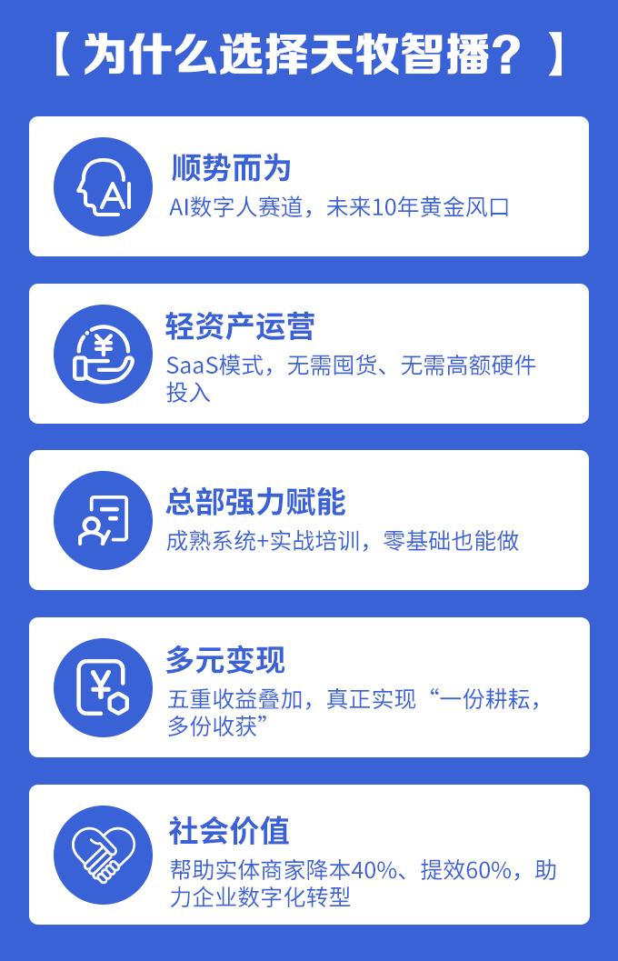 对于合作伙伴而言,选择天牧智播意味着选择一个能够长期稳定运营的合作伙伴。在数字人直播这个千亿级蓝海市场中,合规不是限制,而是对先行者的保护。天牧智播用自研技术筑牢根基,用合规运营保障长远,为合作伙伴铺就了一条可持续的创富之路。
