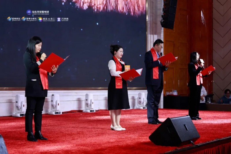 盛典伊始,全场灯光渐暗,一段大气磅礴的企业微电影在大屏上震撼献映。光影流转间,集团的发展脉络、战略定位与未来蓝图徐徐铺展——当人工智能的浪潮席卷千行百业,当教育的本质在技术的重塑中被重新定义,站在月球看地球集团始终立于潮头,以敏锐的洞察与笃定的步伐,探索着“科技+教育”的无限可能。从智慧教育的深耕者到AI赋能的领航者,我们的业务版图已延展至智能学习场景的深度构建、AI营销与效率工具的自主研发,更在线上线下融合(OMO)的广阔天地中,以“赶考状元AI学伴”和“巧学思1V1”为线上双翼,以覆盖全国的AI智能自习室为线下支点,让个性化学习的理想照进现实,将OMO模式的灵活与精准融为一体。