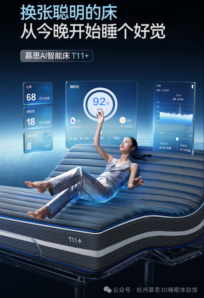 作为首款采用星闪技术的智能床,慕思T11+在操控体验上做到了极致。“拍一拍”:无线磁吸拍拍拍,可放在床垫预设位、床头柜或玩偶口袋里。拍一下,躺平模式;拍两下,一键哄睡;拍三下,零重力模式。场景还可以在APP上自定义。“喊一喊”:通过“小艺小艺”语音唤醒,即可用手机、音箱、智慧屏、车机等设备控制床垫。“点一点”:APP将床垫和电动床的操作合二为一,一个页面完成所有操控,减少跳转。“按一按”:极简设计的遥控器,微凹按钮触感,闭着眼睛也能盲操。让这张床真正融入日常生活的高频使用场景。用户每天都会和它产生情感连接,它不再是角落里落灰的“应急设备”,而是家庭生活的一部分。
