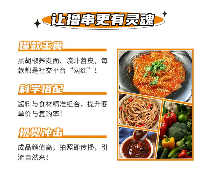 在产品的丰富度上,小撸怡情同样展现了超出预期的想象力。除了经典的关东煮串串,品牌还开发了流汁宽粉、甜辣年糕、黑胡椒荞麦面等创新主食,将单一的小吃场景延伸为正餐替代选项。这些颜值与口感俱佳的"网红"单品,天然具备社交传播属性,消费者拍照分享的意愿强烈,为门店带来了可观的免费流量。科学合理的食材与酱料搭配,不仅提升了客单价,更将复购率推高至60%以上。从单日最高营收3000元、净利润1968元的试点数据来看,这个模型的盈利能力已经得到了市场验证。